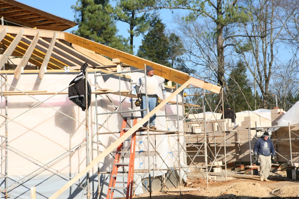 The masons, too, made progress, getting within striking distance of finishing the top Annex bond beam by the end of the year. Here are the few blocks left to be laid: