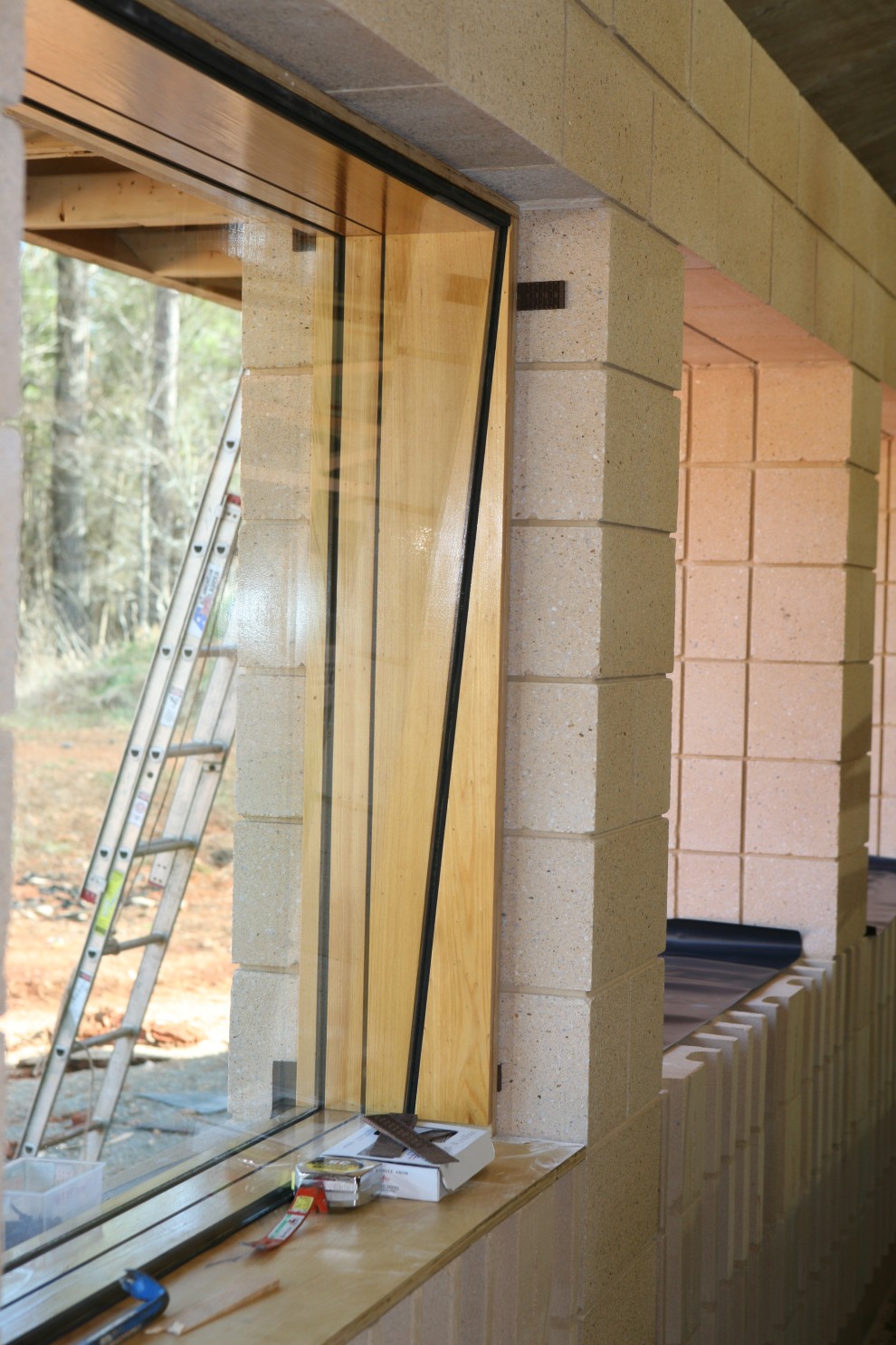And a detail showing the shims that hold the window in place before final trimming and caulking:
