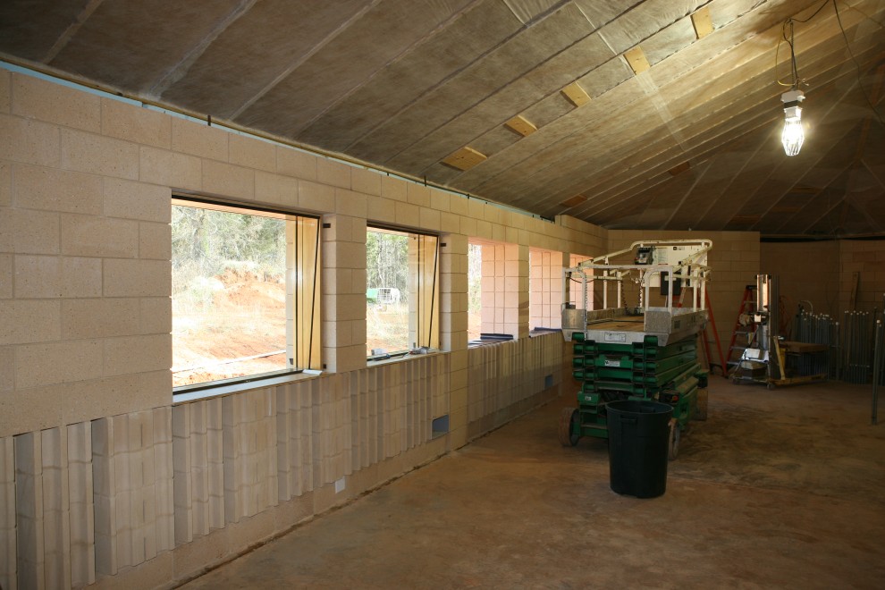 This weekend we’re getting 6″ or more of snow and sleet, plus temperatures down to 8°F (about -10°C). I don’t know how the heaters will stand up to that, and I’m afraid that road conditions won’t let me find out. If our ceiling insulation were blown in, I’d guess we’d do pretty well. But alas, here’s the insulation: