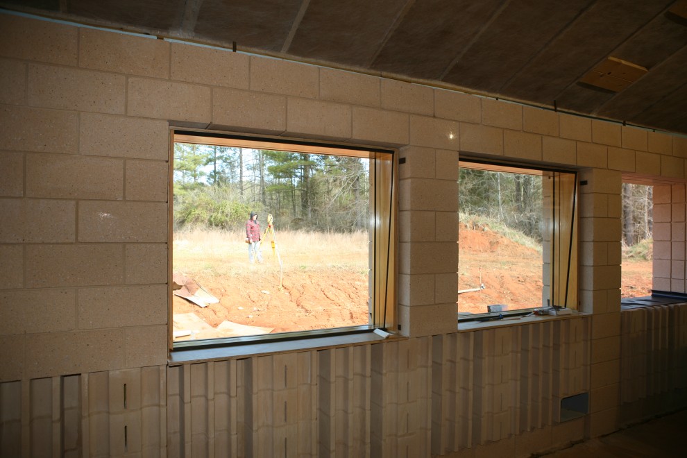 The other major progress involved the booth windows. The making of those windows was a saga unto itself. First we decided we’d increase the size of the exterior glass from 5/8″ (a non-standard size) to 3/4″ (a standard size) and the 3/8″ inside glass to 1/2″. But then our glass supplier told us it would take 3 weeks to special-order the 3/4″ glass. So much for standard sizes! When they delivered the tempered 3/4″ glass, they paired with 1/2″ thermopane glass (which is a pair of really thin sheets of glass separated by a 1/2″ air gap), which has zero use in an acoustical application, so we had to wait for a batch of 1/2″ tempered plate. We got that and then started building the windows, only to discover that the 3/4″ glass had some very small marks that became visible only when the glass was fogged prior to final cleaning and assembly. (We believe that the marks came from the tempering process, where the glass was so heavy that it took the impression of the conveyor belt as it rested in the oven.) The glass was given a fine polish, then a second fine polish, and then the marks were invisible both pre- and post-fogging. The glass was then cleaned, the windows assembled, and finally delivered at the end of this week. Here’s what the first two of them look like from the inside (untrimmed):
