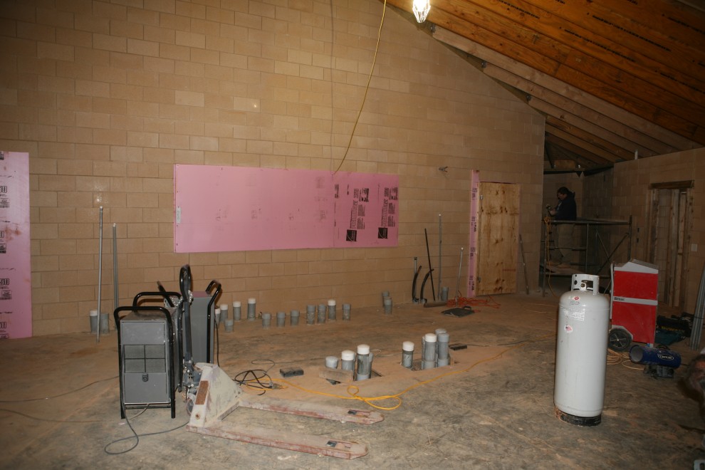 The reason is that we’re now heating it to dry out the slab. Here’s the small heater:
