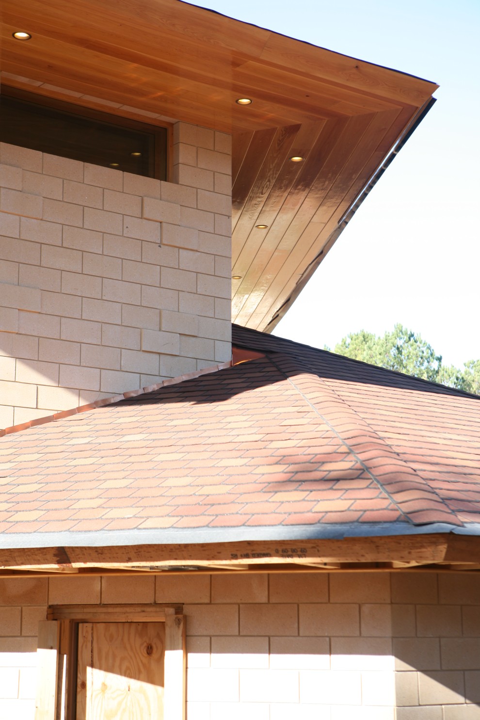 Here we can see the shingles installed and mated to the shaped copper flashing: