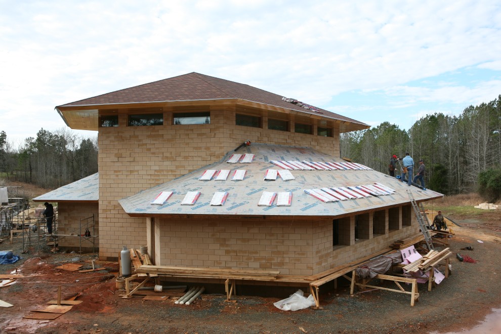 Alas, somebody didn’t count right and so not all of the roof got fully shingled this week: