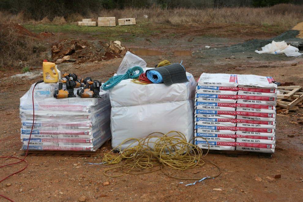 The day’s work began in promising fashion: lots of shingles and lots of tools: