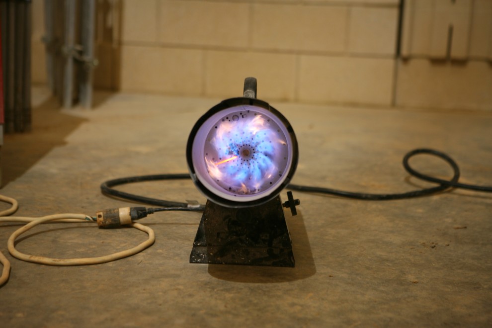 With 200,000 BTU/hr coming from the large heater alone, it was only a matter of a few hours to raise the room temperature from 40°F to 85°F: