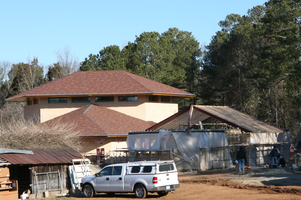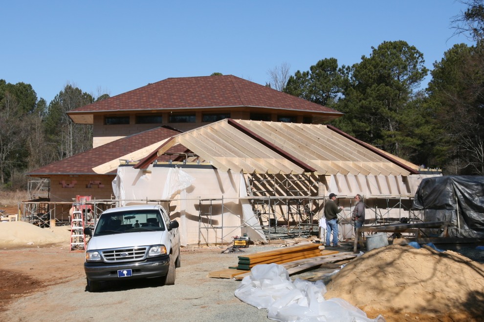 Now we finish with a report of the subsequent progress of the Annex roof framing. The roof framing materials were delivered in a single truckload: