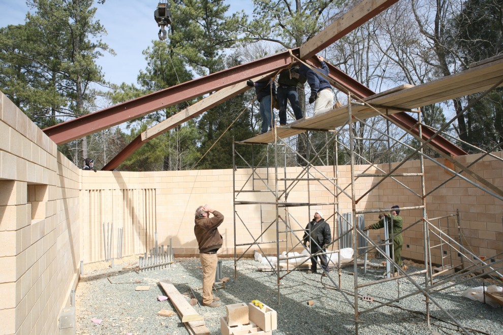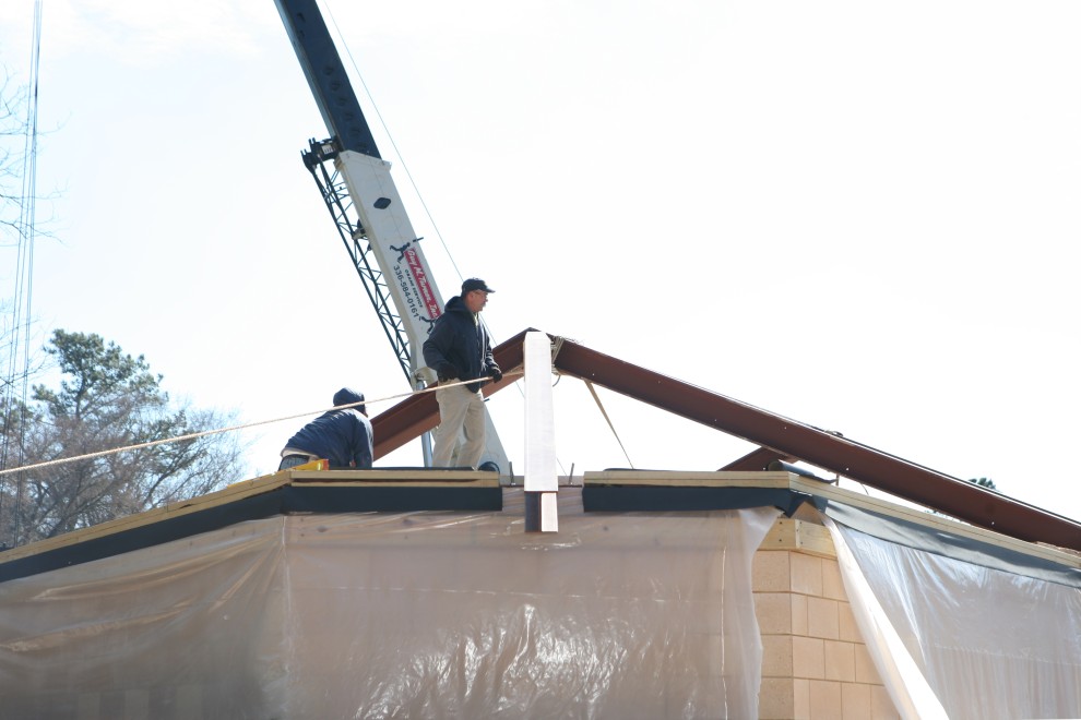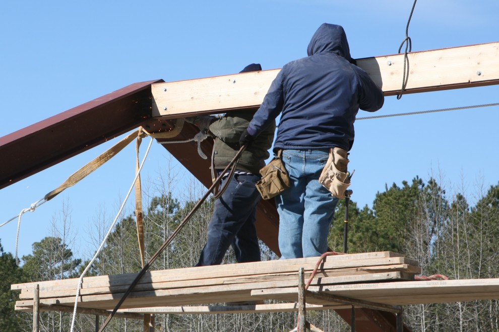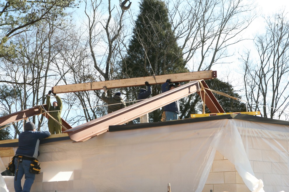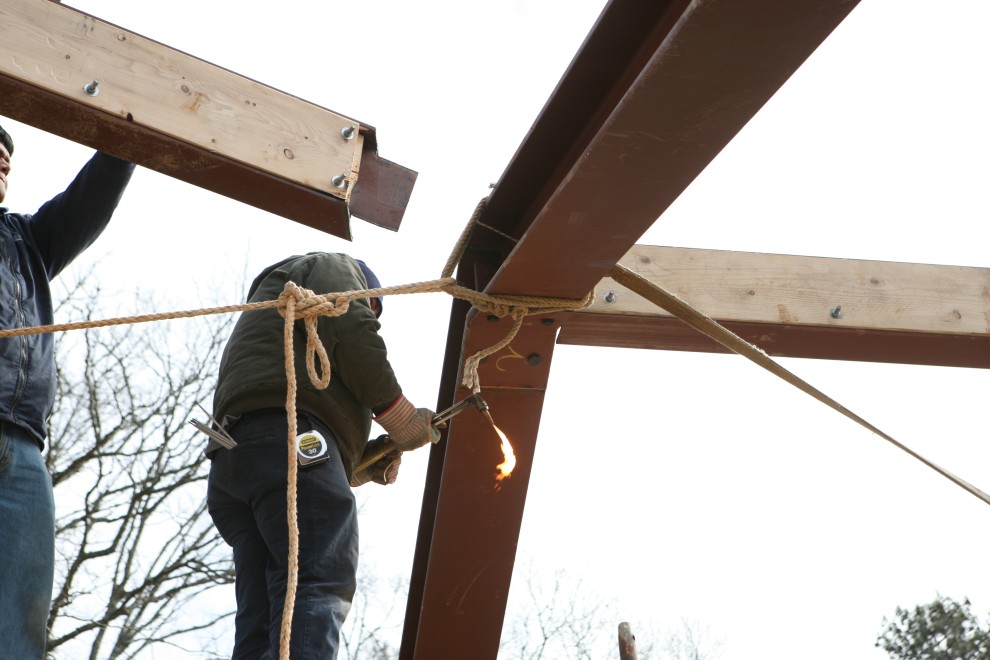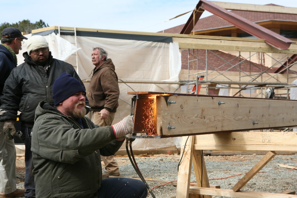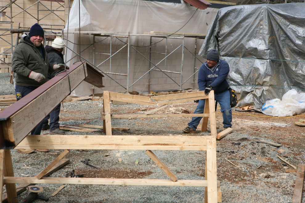 (And yes, the carpenter on the left still can’t believe the beam is properly aligned…but it is.)