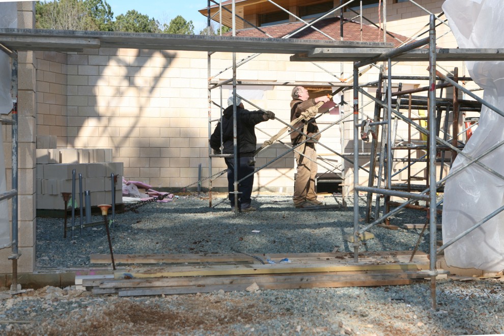 First we set up a scaffold from which the crane operator and all could be directed: