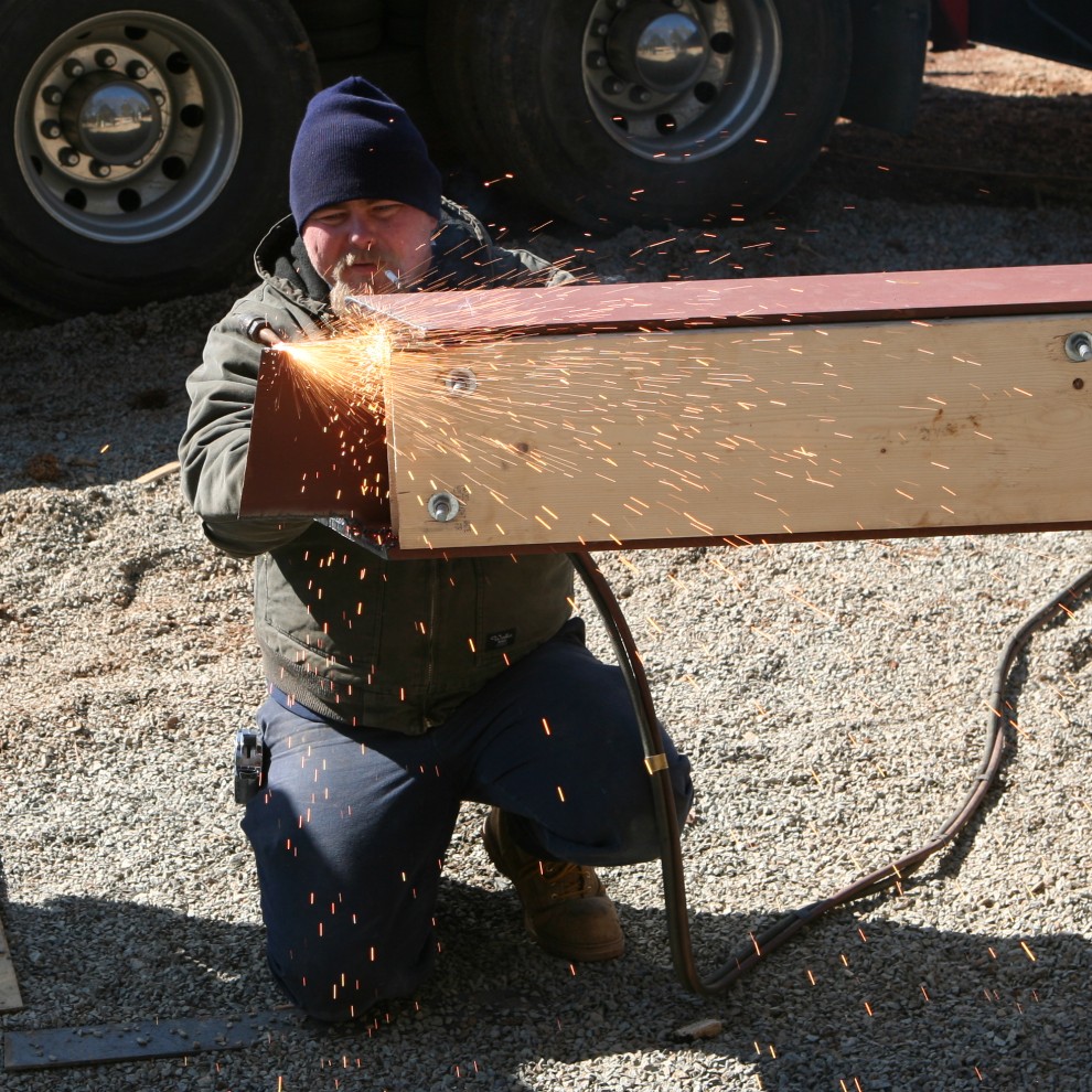 “That’s 500 lbs!” somebody yelled as the sawhorse’s beam split in half. Actually the beam weighed closer to 1,000 lbs, but who’s counting?