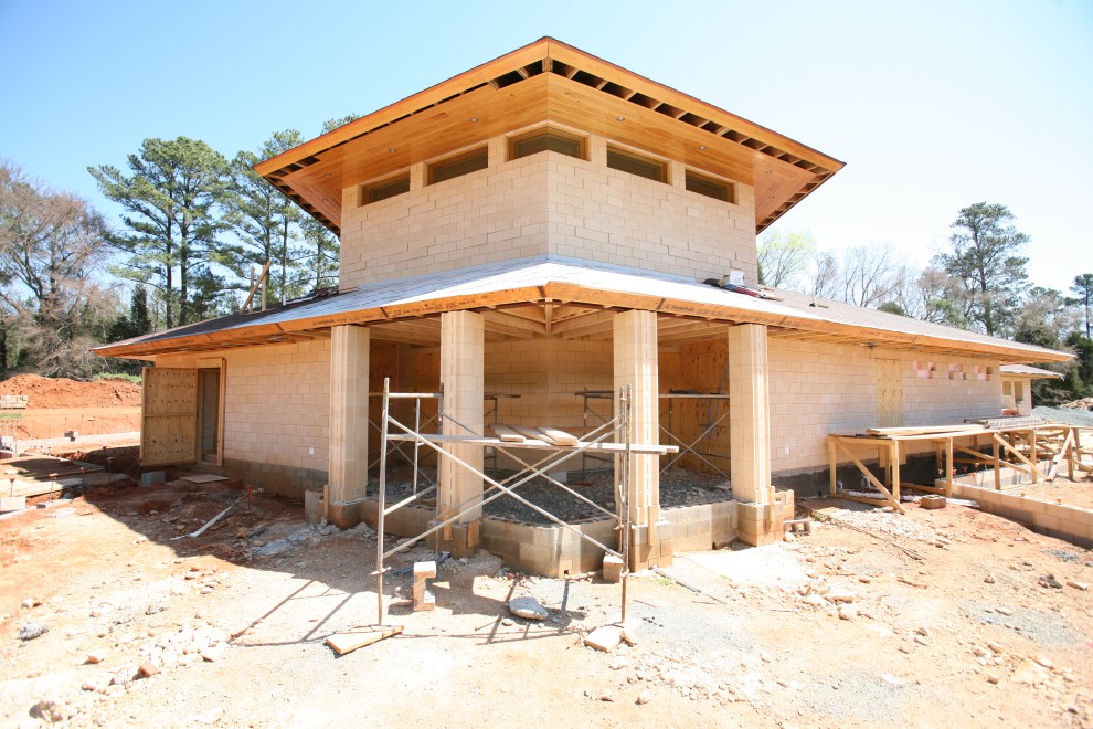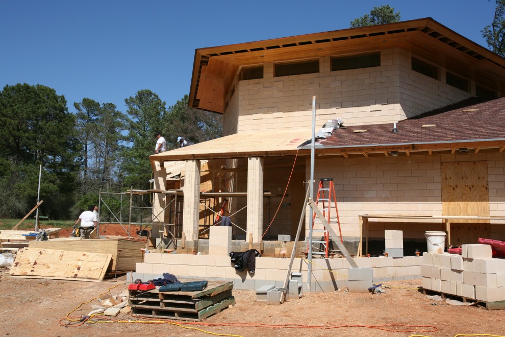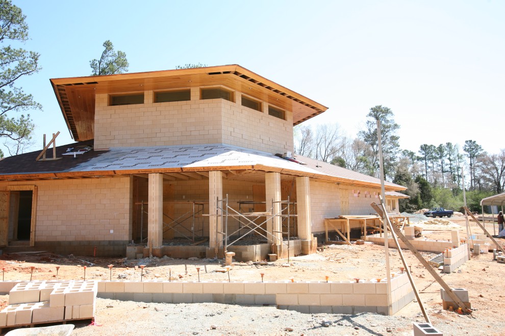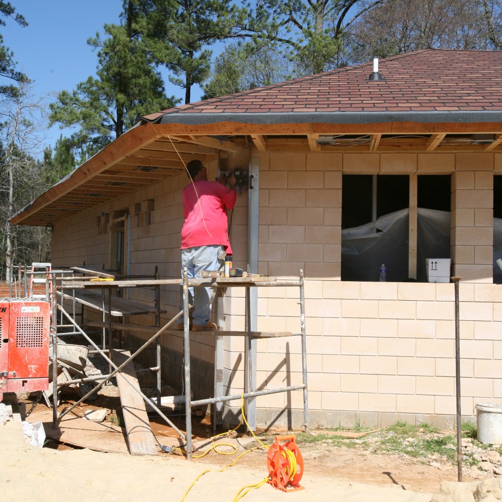 And outside the annex the masons continued their work, finishing the block windows (which you can see above) and cutting channels into the exterior corners so that they can be finished the same way we finished the Main building’s exterior corners: