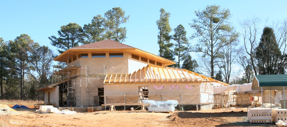 One year ago the Control Room remained a concrete outline while the East and West walls of the Music Room rose to the 14th course: