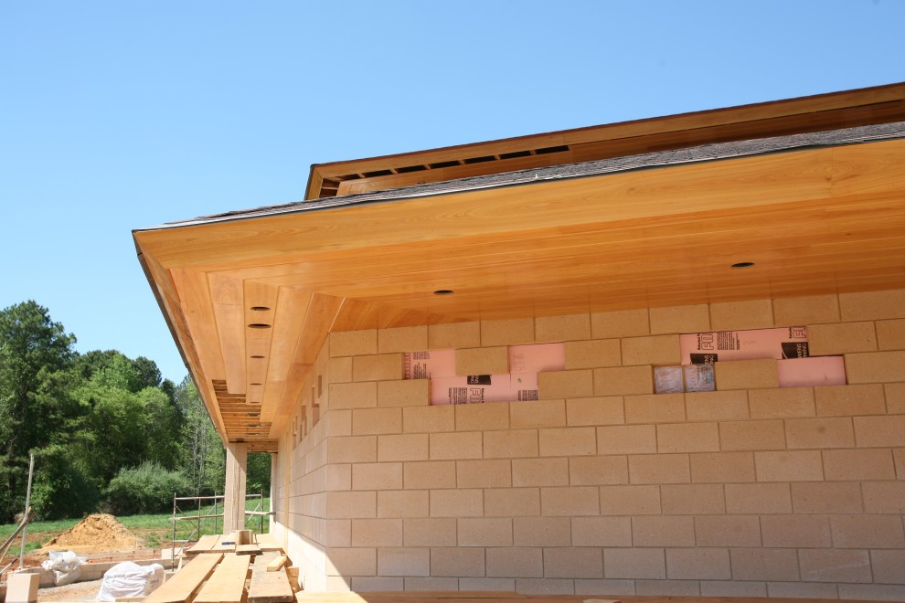 In other news, the other carpentry crew has spent the week installing more Cypress for the lower soffits: