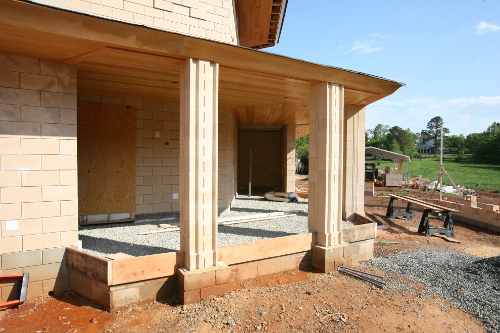 The masons built the concrete block base for holding our massive Dynaudio M4S monitors. These concrete bases will be finished with a mounting surface that will provide the 4 degree slope angled at 30º in from 90º:
