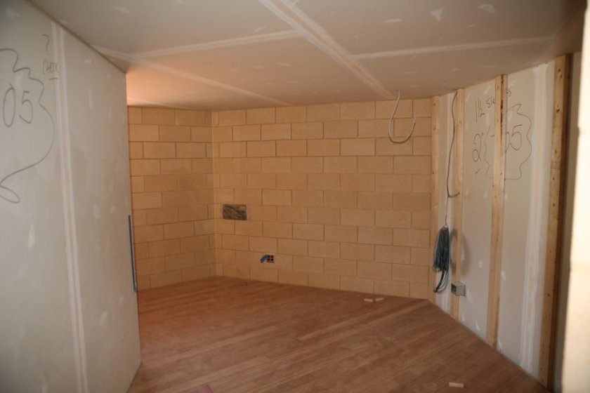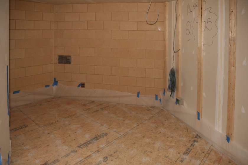 Over in the Annex, another ton or two of sheetrock has been installed. Here is the Annex Control Room with its latest layers:
