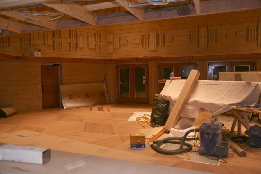 Inside the Music Room, the carpenters are doing detail work between the floor and the door thresholds. If they do their job perfectly, you won’t even know they’ve done it, so no sense in posting photos.