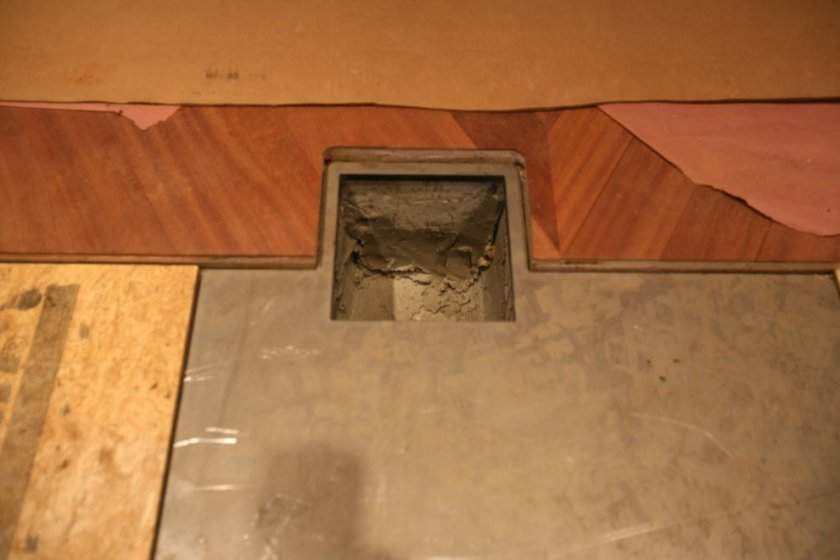 In the control room we’ve managed to cover up our wiring trough. The cover is a series of 3/4″ subfloor where the covering will be removable, and 1/2″ thick steel where we support the console legs. Here’s what it looks like without the wood flooring on top: