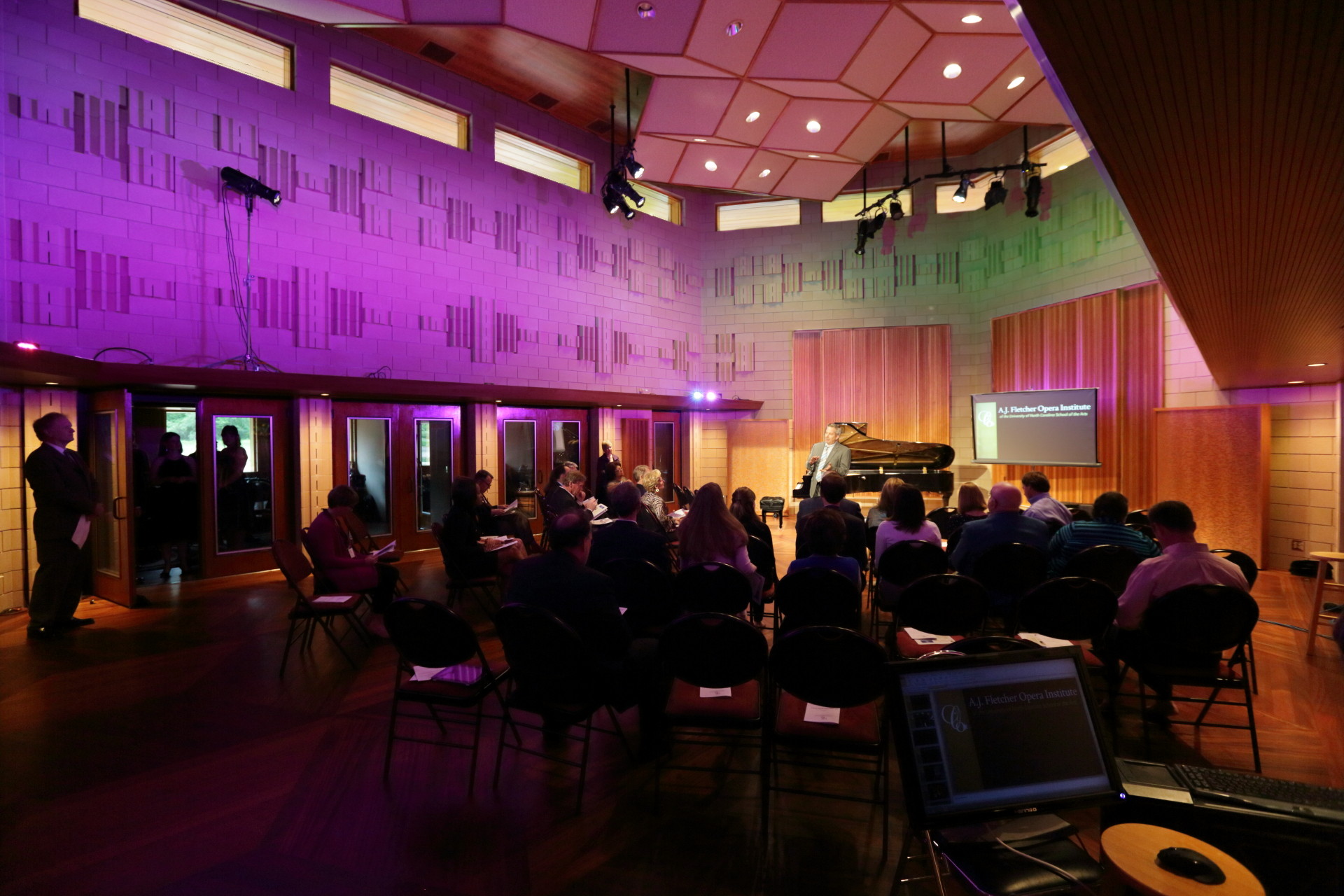But we have only just scratched the surface. To the right you can see Wade Weast, Dean of the School of Music at UNC School of the Arts, talking about Opera and helping the audience to understand the nuts and bolts of finding, sponsoring, developing, and sustaining the next generation of great opera singers. While that subject may deserve a 20 minute talk on public radio, the sheer joy and excitement created by monumental operatic talent is a far more compelling story, and that story is best told by a great operatic singer, singing in a great acoustic environment. When that happens, supporting the institution of opera becomes a simple matter. And when one has the opportunity to speak directly with the artists, one can become directly and unequivocally aware of what ideas and initiatives might have the greatest impact.